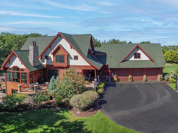 Influenced by a spacious Swiss chalet & nestled in Carver’s private Nathan Woods development, 6445 Nathan Road is rustic luxury at it’s absolute finest. With it’s open & modern design and use of only the finest building materials, every aspect of this home was crafted with care and precision, creating a confident, refined living experience. Sheltered by a range of gently-rolling hills and located near the west bank of the MN River, this distinct property has panoramic views of natural beauty and breathtaking scenery all year long. This spacious & spectacular executive three story luxurious home has 7.8 Acres & plenty of room for future pole barn. Gourmet kitchen, vaulted great room, huge main floor master. ABSOLUTELY Unbelievable! Extremely rare opportunity! Attached Mother-in-law suite. Too many updates to list. Recently finished walk out basement, outdoor landscaping, deck, wine cellar & so much more! Ask for property videos & brochure.