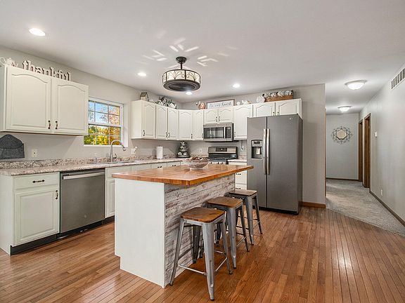 Welcome home to this beautifully updated 4-bedroom, 3-bathroom gem perfectly situated in a desirable location between Michigan City and LaPorte. Tucked away on a peaceful cul-de-sac, this property combines modern updates, comfortable living, and plenty of space for entertaining inside and out. Step inside to an open-concept main level featuring a bright and airy living space with cathedral ceilings and a new electric fireplace with gorgeous stone surround -- the perfect focal point for cozy evenings. The spacious kitchen boasts a new island, ample cabinetry, and seamless flow to the large deck overlooking the fenced in backyard. Retreat to the primary suite, complete with a private en suite full bathroom for added comfort and convenience. The home's thoughtful layout offers three additional bedrooms and two more full baths, providing plenty of room for family or guests. The daylight basement (finished basement with 8.5 ft ceilings!) is a true extension of the living space, featuring large windows with backyard views, a newly added bar, and a spacious family room perfect for entertaining or relaxing. Additional highlights include a 2-car attached garage, plenty of storage, and modern finishes throughout. Don't miss your chance to own this move-in ready home that perfectly balances privacy, comfort, and location. Schedule your private tour today and experience everything this beautiful property has to offer!