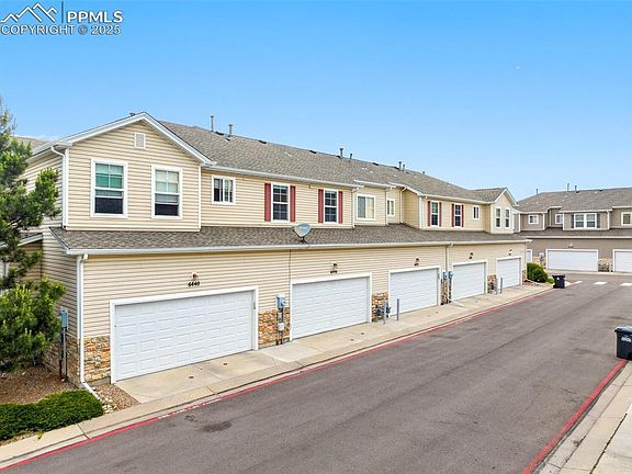 Beautiful move-in-ready townhome! Attractive and durable wood laminate floors on main level, where you'll find access to the attached 2-car garage, half bathroom and large closet with crawl space access. Plus, a fantastic kitchen with stainless steel appliances, pantry, and pass-thru to family room for natural light and openness. This practical floor plan includes 3 bedrooms, large laundry room and full guest bathroom upstairs. Enter the roomy master bedroom through the double doors and enjoy high ceilings, walk-in closet, and an attached full bathroom with double vanities. Additionally, two more bedrooms upstairs provide privacy from the main level and just steps away from the laundry room and full bathroom. Stay comfortable inside with central A/C, plus new carpet upstairs. Close to the many shops, restaurants, entertainment and conveniences of the Powers Blvd Corridor. Schedule a showing today!