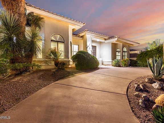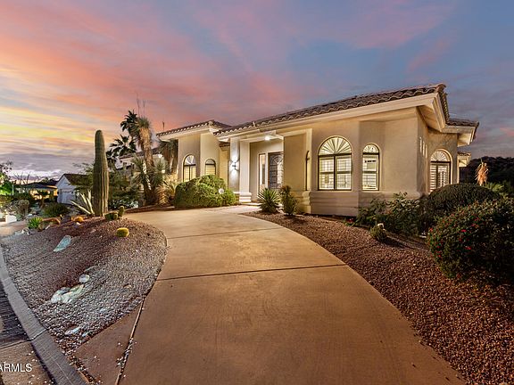 This stunning home is perfectly positioned on the Red Mountain Golf Course, showcasing breathtaking mountain and desert views. The upper level features elegant travertine flooring throughout and a completely remodeled kitchen with modern finishes and high-end details. Entertain in the formal dining area or at the wet bar w/wine cooler. The breakfast nook, framed by expansive glass windows, offers breathtaking mountain views! The lower level offers a convenient kitchenette ideal for guests or entertaining as well as washer and dryer hook-ups both upstairs and downstairs for ultimate convenience. Step outside to your private backyard retreat with a sparkling in-ground pool and relaxing hot tub. Situated on a spacious half-acre lot, this home offers room to expand! You'll love the den w/built-ins, plantation shutters, & a laundry room w/extensive cabinetry! A 3-car garage, sparkling pool, & rejuvenating spa complete this stunning home. Embrace the beauty of mountain views and unforgettable sunsets, experience it for yourself today!