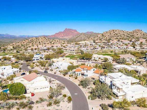 Welcome to the exclusive & highly sought gated community of Sky Mountain Estates in Red Mountain Ranch. This custom home offers tons of character! It includes a grand entry, a downstairs primary suite, a den with built-in bookcase & 3 upstairs bedrooms. NEW: exterior paint, resurfaced pool & pool decking. Enjoy all Red Mountain Ranch has to offer with an optional club fee that includes access to an 18-hole championship golf course, tennis courts, pool + spa, fitness center & new pickleball court!