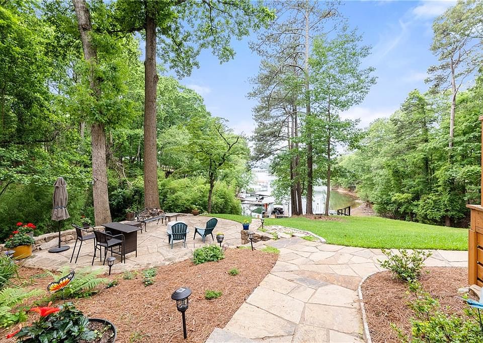 Sunset views, grass to the water/dock AND a quiet cove within a no-wake zone?! Yes please! This one is right in the heart of the south end, right around the bend from Pig Tails AND Fish Tails and two miles from downtown Flowery Branch downtown area. Bring your swimsuit and towel and enjoy the lake life beginning NOW! This authentic lake home is situated on 1.26 wooded acres with grassy walk to the water's edge and dock. The Corp line is just feet from the water, allowing you more room for additional patios, pool, view improvement, or whatever else you want to add to this already resort style setting! This home has been updated/renovated since 2018 including new kitchen, both baths, oak flooring refinished throughout NO carpeting, replaced decks, large stone patio/walks with sitting walls, sunroom, replaced HVAC, new water heater, new roof, custom tinted insulated glass with lake views from almost every room. Truly move in ready! No rental restrictions and no HOA! Bring the boats, jet skis and RV, plenty of parking in addition to a two-car detached garage. Single slip dock built in 2019 with shoreline steps and rip rap. This one will NOT disappoint. The house faces west for sunset views every day! No wake zone for quiet enjoyment but just around the corner from big water on Flowery Branch Creek. (Public Records square footage amount does not include sunroom).