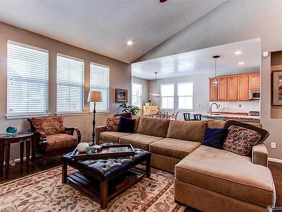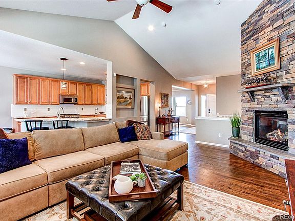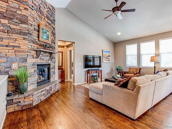 Wonderful Beacon Point Ranch with 3 car garage and open floorplan. Cherry Creek School district, walking distance to Aurora Reservoir, easy access to E470 and Southlands mall. Formal dining and kitchen nook. Great Room features soaring rock fireplace. Stainless appliances and Viking gas cooktop and microwave. Real hardwood floors throughout the living areas. Seller has completed updates to include: replacing the floor tile in the kitchen with hardwoods and adding a new backsplash. Secondary bathroom has new flooring, sink and vanity. Many new light fixtures. Primary bedroom suite has spacious bathroom with dual sink stations, oversized shower, garden tub and large walk-in closet. Extended deck with privacy fence in back yard. Beautiful landscaping with stone walls, perennials, shrubs installed in 2020. Garage is insulated and dry-walled. Basement is unfinished but has high ceilings and 3 egress windows. Buyer to verify measurements. Main level and Basement measurement taken from past appraisal. Tax records show 2203 for main and 2203 for basement.