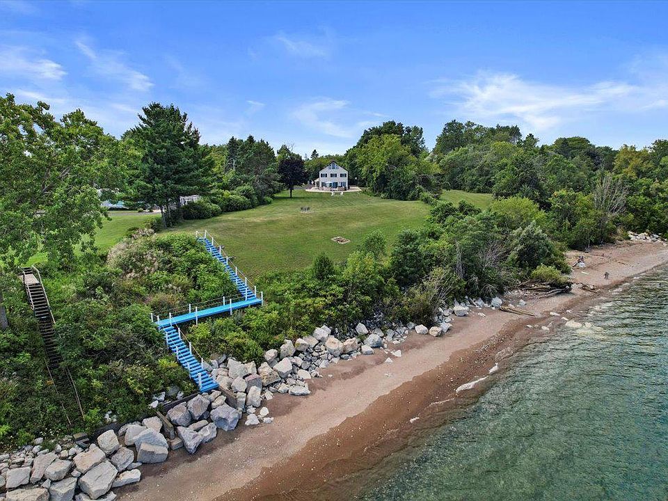 Make your dream of living on Lake Michigan a reality! This private residence is tucked away on nearly 2 acres with 180 feet of lake frontage & sandy beach! Gorgeous remodeled kitchen, hardwood floors, spacious living room with fireplace, large dining area plus family room. 4 bedrooms & 3 baths including primary suite complete with walk in closet & attached bathroom. 3rd floor office with amazing lake views, lower level rec room. Gorgeous private lot with large patio & stairs to private beach. One year home warranty included.