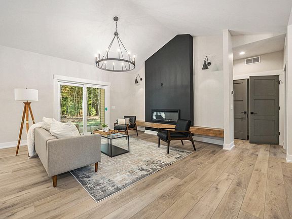 Discover your dream home with effortless living and modern comfort! This stunning 3 bed, 2.5 bath residence features zero-step entry, a cozy fireplace, and solid-surface countertops with a spacious walk-in pantry. Enjoy year-round comfort with high-performance foam insulation and Energy Star triple-pane casement windows. Covered porches, landscaped and hydroseeded grounds, and a private wooded backyard provide the perfect retreat. Just steps away from the state park, golf course, and bike trail with shopping, dining, and the new Costco nearby. This home blends energy efficiency, natural beauty, and convenience in one exceptional package.