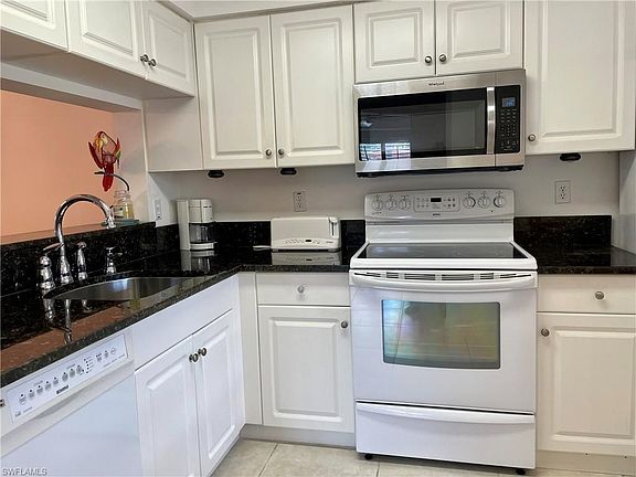 This beautiful turnkey furnished home with three bedrooms is the home you've been waiting for with full lake and fountain views on the 1st-floor end unit is move-in ready! Exceptionally maintained with an impressive list of upgrades! New air conditioner, newly renovated master bathroom with dual sinks and modern wood vanity, granite counters, plantation shutters, Queen size murphy bed, and a new roof! The buyer will also receive a full 12 month Home Protection Plan. It doesn't get any better than this Gated Community with resort-style amenities, including three heated pools, spa/hot tub, tennis courts, Bocce Courts, Fitness Center, Billards, and a full-time activities director for social events. This prime location is close to many dining and shopping choices - just 6 miles from the beach, Mercato, Whole Foods, theatre, and nearby access to I-75.