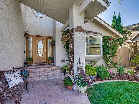 Beautifully expanded & remodeled in 2004 & 2021, this CUSTOM HOME spans over 3,000 sf on a pie-shaped lot with unobstructed views. Nestled against the Santa Teresa Hills on a quiet cul-de-sac with no rear neighbors & NOT in a high fire hazard zone! The stunning kitchen is ideal for chefs of all levels w/ an 8 ft long island, granite countertops, garden window, custom cabinets, breakfast nook, & GE Monogram SS appliances: gas dbl oven range w/ grill+griddle, lg fridge, micro, d/w, warming drwr, trash cmpctr. Gleaming Hardwood Floors adorn the foyer, kitchen, & formal dining rm w/brilliant Swarovski crystal chandelier. The grand primary suite has 2 walk-in closets & a private balcony. Living Rm w/vaulted ceilings; Family Rm w/cozy gas F/P; Office space; Laundry rm; Mudroom; Sunroom w/wet bar & fridge; DUAL-ZONE Central A/C & Heat; Dbl-Pane Windows; Recessed Lighting & Ceiling Fans. The beautifully landscaped yard is an oasis: Travertine tile patio & custom-built pergola w/heaters, lights & ceiling fan; custom built-in BBQ w/bar seating; upper garden on terraced hillside; private courtyard; two storage sheds; lg lawn; fruit trees & drought tolerant plants. Great schools, easy commutes, close to shopping, parks, hiking trails & more. THIS IS A RARE, MUST-SEE PROPERTY ~ Don't miss it!
