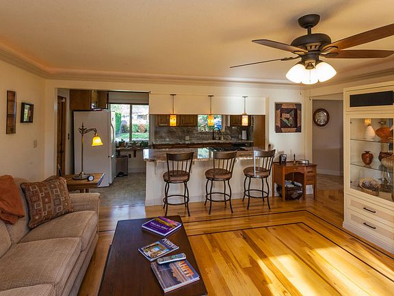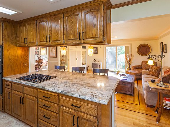 Exceptional remodeled 3Bed/2Bath home on oversized corner lot. Family Room features knotted hickory flooring, open floor plan from large kitchen. Crown molding with recessed LED lighting. Kitchen has oak cabinets slab granite countertops, 4 burner gas JennAir cooktop w/griddle/grill insert, built in GE profile oven/microwave. Gated RV Parking with car port, mature landscaping & fruit trees.