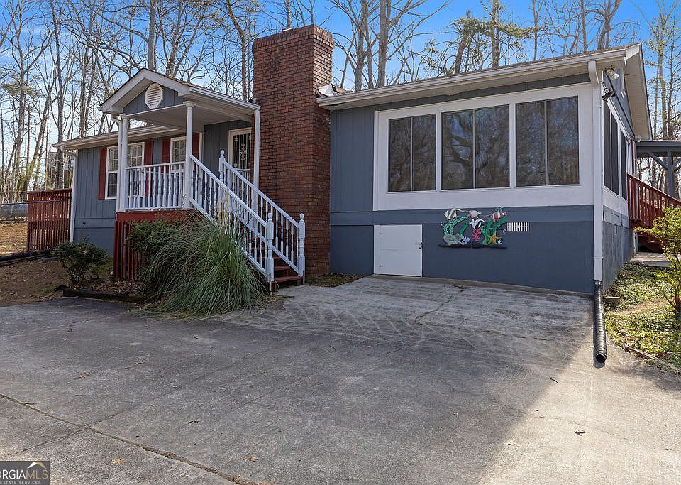 Welcome to your private wooded lake-life retreat in Flowery Branch! Tucked away on a large unrestricted lot, this charming bungalow offers peaceful surroundings with the convenience of nearby shopping, dining, and a five minute drive to Safe Harbor Marina. Enjoy outdoor living year-round with a seasonal lake view, spacious sunroom porch, covered outdoor areas, and plenty of room to garden, relax, or expand. Inside, the home is clean, well cared for, and move-in livable with mostly hard surface flooring, a bright open living space, and a functional kitchen with ample cabinetry and natural light. While interior finishes are mostly original, a recent pre-listing inspection confirms solid bones and great overall condition - making this an excellent opportunity for buyers looking to personalize and build real equity over time. The generous lot provides rare privacy compared to nearby neighborhood homes, offering a tranquil setting with mature trees and open outdoor space. A shared driveway leads to the lake; however, the property itself does not include lake access. This property also boasts a well equipped shop with power and HVAC making for excellent storage and workspace. Perfect for first-time buyers, downsizers, or investors seeking a strong location with upside potential. Whether you're looking for a peaceful primary residence or a value-driven opportunity in Flowery Branch, this home delivers space, privacy, and possibility at an attractive price point.