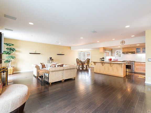 Prepare to be impressed by this stunning, architecturally significant front unit townhome designed by beloved Pat Killen, full of sunshine & custom finishings. The entire top level features the sophisticated living space, great room style. Warmed by a central fireplace, the massive living room opens to a large, west-facing deck for basking in the sunshine, feeling the ocean breeze or enjoying ocean & sunset views. Ideal for entertaining, the living space effortlessly flows to the dining room & gourmet kitchen with casual bar seating. Your inner chef will delight in the gleaming granite countertops, generous cabinetry & stainless steel appliances including refrigerator. Additional enhancements include elegant dark hardwood flooring, plantation shutters, recessed lighting & designer paint. All 3 bedrooms are conveniently located together on the entry level, including the spacious Master suite boasting 2 walk-in closets & a 2nd balcony with an ocean peek. Relax and unwind in the luxurious remodeled Master bathroom with dual vessel sinks on a stone countertop, spa tub, separate shower & water closet. The lower level offers storage under the stairs, a generous laundry room including sink & plentiful cabinetry, plus the attached 2 car garage with 2 additional storage spaces & even an extra covered parking space. All this is ideally located 1 block from the greenbelt, near Friday farmers' market, shops, restaurants, exciting downtown, award-winning schools & 6 blocks to the beach!