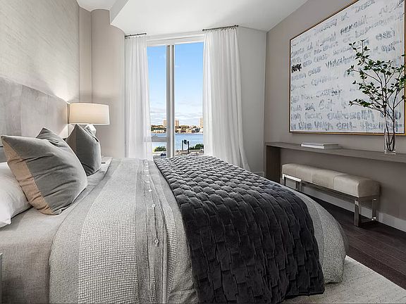 Three Waterline #1507 is a three-bedroom, three-and-a-half bathroom with stunning Manhattan skyline and Hudson River views. The entry foyer leads to the living and dining room with an open kitchen including a waterfall island, wine refrigerator, fully-vented range hood, waste disposal, and an appliance package designed by Bosch. The residence features a vented washer/dryer, and a five-fixture bathroom in the master suite, making it a truly unique and elevated offering.