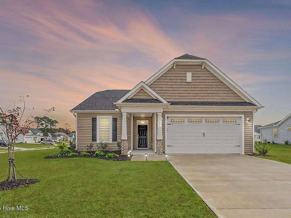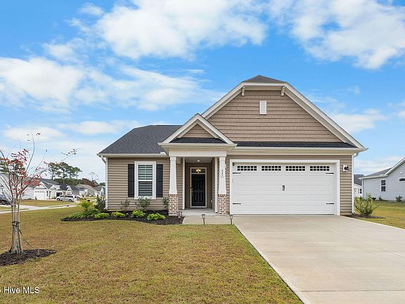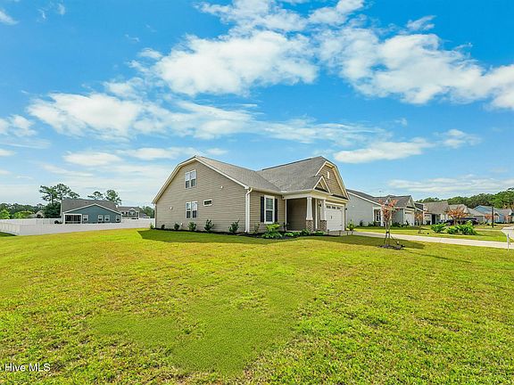 Discover that this ''nearly new'' turnkey home on a corner lot is your coastal dream come true! The Cherry Grove floor plan by Chesapeake Homes located in the low cost HOA community of Goose Marsh contains 3 bedroom & 3 baths with potential to finish a 4th bedroom upstairs! A covered porch with brick accents welcomes you inside to the entry foyer with vinyl flooring and 9 foot ceilings. 2 carpeted bedrooms and full hall bath are nestled at the front of the home giving privacy for family or visiting guests. Further into the home you'll reach the open living room with trey ceiling. A kitchen perfect for a chef is nearby complete with grey cabinets with soft close drawers & doors, granite countertops, kitchen island, tile backsplash, stainless steel appliances (refrigerator, dishwasher, microwave, stove), disposal and pantry. A dining area is also part of this inviting space giving opportunity for family dinners, game nights, entertaining or relaxing. A towering double sliding glass door bathes the room in natural light and leads to the backyard of the oversized . acre corner lot with plenty of space to add a fence, garden or outdoor fun! The primary suite is located off the living room, separate from the rest of the home. It offers a trey ceiling, European Zebra blinds (included throughout the home!), ensuite bathroom with dual vanities, linen closet, toilet room, step in shower and large walk-in closet. On your way upstairs you'll see a large drop zone/mud room area as well as a laundry room. Upstairs is a carpeted loft area with full bathroom, walk in closet and plenty of attic space. This is the perfect space for a play room, office or gym etc. Do you love to DIY or expand in the future? There is the potential to finish a large upstairs room for a 4th bedroom, gym, craft room, man cave or other such endeavor or keep for an amazing amount of storage. A 2 car garage gives plenty of space for cars, tools and beach toys and features garage door opener, added garage lights and pull down attic stairs. The possibilities are endless but this opportunity is not. Act now and be a part of this coastal community minutes to the beaches of Oak Island, historic downtown Southport, Wilmington & Shallotte!
