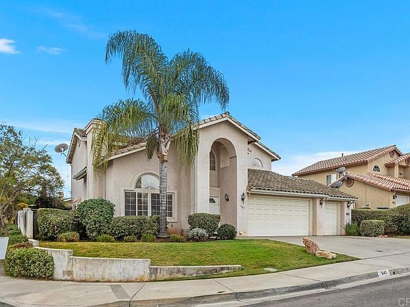 Newer home on a quiet double cul-de-sac street. Welcome to Felicita Place Homes! Some of this home’s features include: vaulted ceilings, tile flooring, dual pane windows, bullnose corners, tile roof and upgraded window blinds. Open bright central kitchen with center island and eat-in bar. Primary bathroom offers a separate tub and shower and 2 large closets. Downstairs bedroom with full bath. No HOF or Mello Roos. Enjoy the 3-car garage; complete outside gutters and downspouts; central forced air conditioning and a wrap-a-round back yard! In addition to the exceptional detail of this residence is the benefit of its close proximity (walking distance) to Major Market, Trader Joes, Jimbos and CVS. Also, just a skip away are the North County shopping mall and easy connections to the I-15 Freeway.