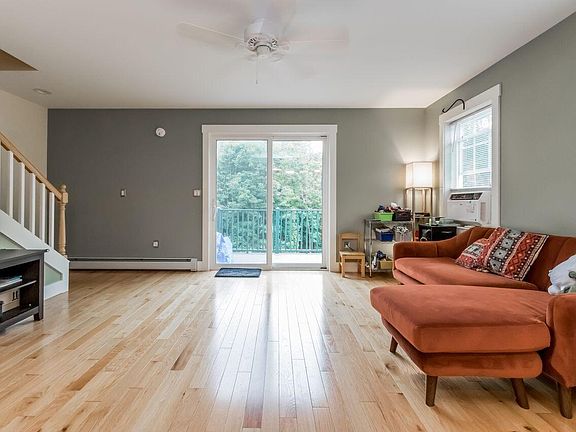 Enjoy this bright and sunny property that has large windows, shiny wood floors, a well appointed kitchen with granite countertops, stainless steel appliances and an extended breakfast bar. The upstairs bedrooms have large closets for storage, a full bath and laundry. The basement bedroom is currently being used as a playroom, and has its' own heating zone. The entire shared wall has been soundproofed for added privacy. Walk out of the sliding glass doors to the deck, and enjoy the outdoors and yard. This association owns 167 feet of water frontage on the Presumpscot River, and has a direct easement to the Sebago to the Sea Trail that connects with the East Bridge Street Ball Field. Parking is easy with 4 dedicated parking spots, and many additional spaces of overflow parking. Enjoy the ease of daily living with nearby amenities such as Hannaford less than a minute away, and Rock Row within 10 minutes away, and under 6 miles to Portland's Old Port.