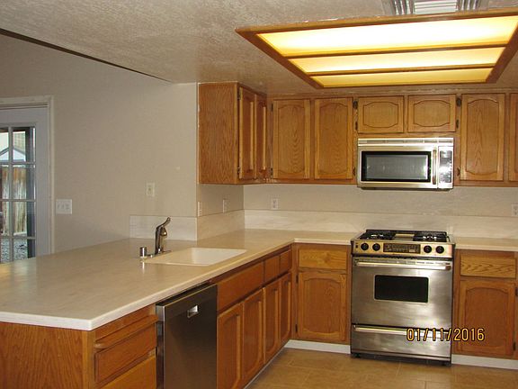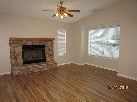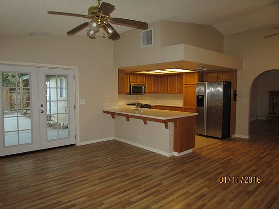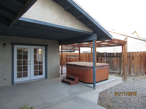 Newly remodeled ! Double entrance doors , new laminate flooring in living areas, fireplace with raised hearth for warm welcoming living. The kitchen has corian counter tops with built in sink ease in cleaning. Stainless appliances including MW, Range, DW and refrigerator. Vaulted ceilings in living room and family room for a spacious open feeling. Bedrooms have carpet and ceiling fans. Master bedroom has walk in closet and french doors that lead to the covered patio and spa! Plenty of side parking and double gates to back yard with parking space.