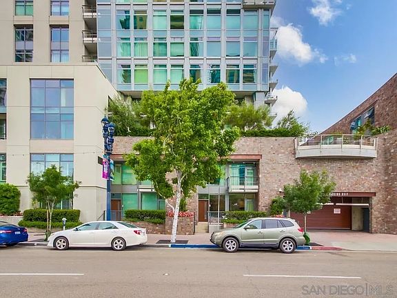This beautiful, elegant, and sophisticated walk-up Penthouse is now available for sale, and a rare opportunity to own one of most luxurious townhouses in the Marina District of Downtown San Diego has to offer. This unit has three different entrances to the unit and that includes direct street access to market street. The 20 feet high ceiling is gracefully complimented by an abundance of light protruding through the full-height windows throughout this two stories unit. With 2,150 sq ft of living space, enjoy an open living room, kitchen, dining area, a full bath, hideaway office space, and a large walk-in pantry on the ground level. Upstairs offers two bedrooms, two full baths, laundry room and living room.