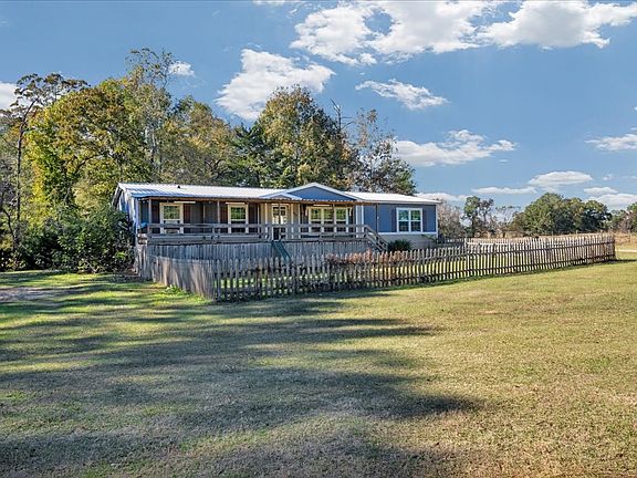 Enjoy peaceful country living in this beautiful 2019 double-wide home set on 3.81 scenic acres in sought-after Central ISD. With 4 bedrooms, 2 baths, and 2,112 sq. ft. of open living space, there's room for everyone to relax and unwind. The bright, airy floor plan features a spacious family room with an electric fireplace, a large kitchen with pantry, island and breakfast bar, and a welcoming dining area perfect for gatherings. The primary suite offers a private retreat with double sinks, soaking tub, separate shower, and three closets. Step outside onto the large covered front porch to enjoy the quiet setting — complete with a small pond, fencing for livestock, and a charming picket fence around the yard. The acreage is ideal for kids, pets, or ag projects — even a few chickens or a horse! Two RV hookups and an aerobic septic system add extra convenience. A wonderful place to call home, combining modern comfort with the beauty of country life!