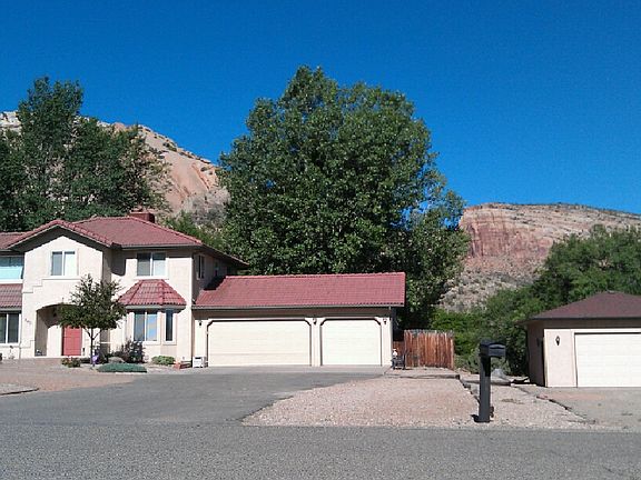 A spectacular find at the base of the Colorado National Monument. This one-of-a-kind, turnkey home boasts 4 bedrooms, 2.5 bathrooms, 2292 square feet, gas fireplace, open floor plan, 3-car garage, and a 2-car detached garage/workshop. Wake up to amazing views of the Monument or enjoy breakfast/dinner while gazing at the serene views and listening to the calming fountain on the side patio. Two shares of irrigation water keep the grass green and the veggies growing. Mature trees and a pergola keep the backyard comfortable in the summer heat. The spacious and grassy fenced backyard offers a lush playground for children or pets. RV parking and electrical hook up are present. There is plenty of space between you and your neighbors on the well-maintained 2-acre lot. Come live and play in one of the best communities in the Redlands! View tour on Youtube: 645 Kayenta Ct or click on: https://www.youtube.com/watch?v=ITKlwV4xjQgAdditional property info: http://www.forsalebyowner.com/listing/4-bed-Single-Family-home-for-sale-by-owner-645-Kayenta-Ct-81507/23997761?provider_id=28079