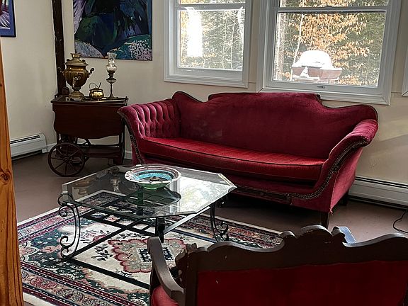 This beautiful Barn house has an abundance or windows and is flooded with light on all sides. Its situated in a nook by the trees so there is privacy without being too secluded. there is an extra long deep soaking tub in the downstairs bathroom and a large steam shower with Moroccan tile all around and glass doors looking out. The master bedroom has a private balcony which sits surrounded by the trees with stunning sunrises. Owner pays for plowing and yard maintenance. Tenant is responsible for their own trash removal and shoveling path. There is no tel or wifi so Tenant will have to get their own.