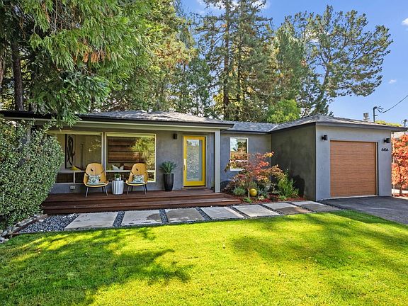 Set back from the street in privacy, this bright, modern home balances contemporary design with a warm and inviting character. Step inside to an open floorplan that seamlessly connects the living room, dining area, and chef's kitchen with premium appliances from Bluestar and Fisher & Paykel. Three bedrooms provide comfort and flexibility, with one easily convertible into a home office, and a finished bonus space in the garage adds even more versatility. Majestic redwoods shade the serene backyard, where a lawn and an expansive deck offer plenty of space for entertainment or relaxation. The location is exceptional, with Briones Park just steps away, top-ranked schools including Briones Elementary, Fletcher Middle, and Gunn High all within walking distance, and the shops and dining of The Village at San Antonio Center close at hand, with everything Palo Alto has to offer within easy reach.