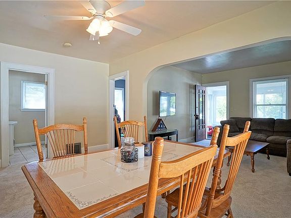 Check out this cozy home located in the heart of Ravenna. You are greeted by the sunroom that leads to the main living space with fresh brand new carpet. There is a formal dining room space off the living room which leads into an eat in kitchen with stainless steel appliances. Two bedrooms and full bathroom are located on the main floor. Downstairs, feature naturestone flooring with plenty of room for storage. Laundry room and bonus room which at one point was used as a music room. Large backyard with plenty of space. You will not want to miss this home. Features: new carpet in living and dining room, fresh paint in main living space, AC/Furnace new March 2020, Water Tank 2016, Fridge and Range in 2018.