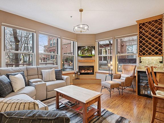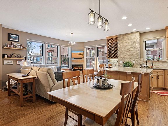 Don't miss this opportunity to immerse yourself in North Loop living in this exceptional first floor corner-unit 2BR/3BA 2-story condo in the River Station community! Home's rare floor plan at 1422 fin sqft is the largest available in the development. Enjoy your own private entrance from the fully fenced patio. Corner unit provides loads of natural light w/ 6 windows on main floor alone. Numerous exquisite features, such as 9 ft ceilings, real hardwood floors, modern corner electric fireplace, stacked stone feature wall, built-in beverage fridge and extensive wine rack, XL peninsula, custom kitchen cabinetry, & custom lighting throughout. Primary BR suite features a walk-in closet w/ California Closet system and private BA w/ beautifully tiled shower. All 3 BAs have been fully remodeled. Updated laundry area w/ hidden washer/dryer combo unit sits just outside primary BR. Furnace, A/C, & water heater all new in last 5 yrs. Two assigned parking spaces in underground heated garage. Storage spaces in garage and 3rd floor. Endless entertainment within walking distance (sports teams, restaurants, comedy club, theaters, bars/clubs), biking/hiking trails, & public transportation. Don't miss this gem!