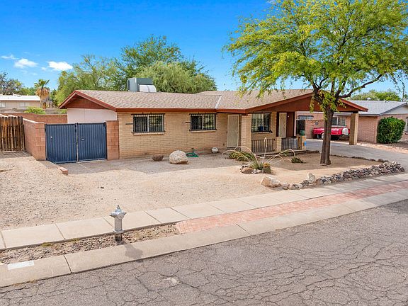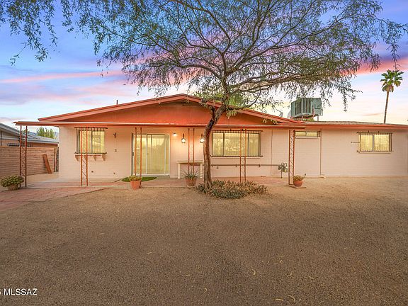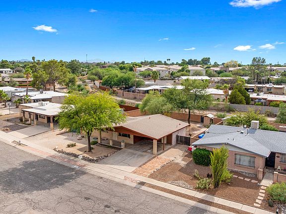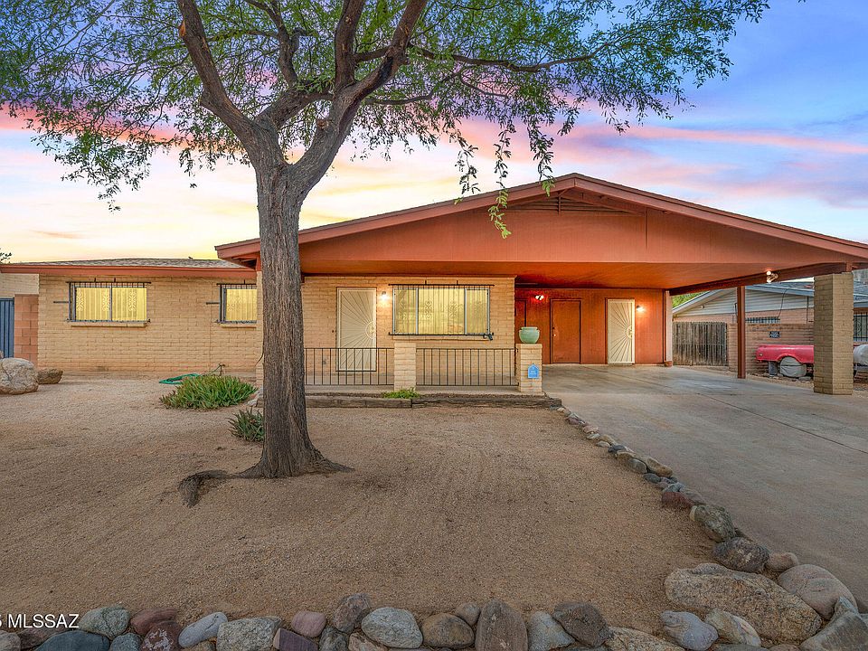 Affordable opportunity for 1,306 SqFt 3 bed/2 full bath 1973 Mid-Century Modern masonry ranch on spacious .20 acre R-1 lot, attached 368 SqFt extended double carport, the freedom of no HOA in Kingswood neighborhood located in East Tucson. Ideal for first time homebuyers, Air-BnB/investment property, seasonal visitors (welcome snow birds), parents looking to secure student housing and investors alike! Featuring E/W orientation, Catalina mountain views, architectural single roof, single story, no stairs/no steps, wrought iron security bars on all windows, custom metal security doors, spacious concrete driveway, concrete sidewalk, on and off street parking, storage, freshly painted Oct 2025 with Non/Low VOC paint, low maintenance front yard, custom metal mailbox, covered front porch with secure metal security door.