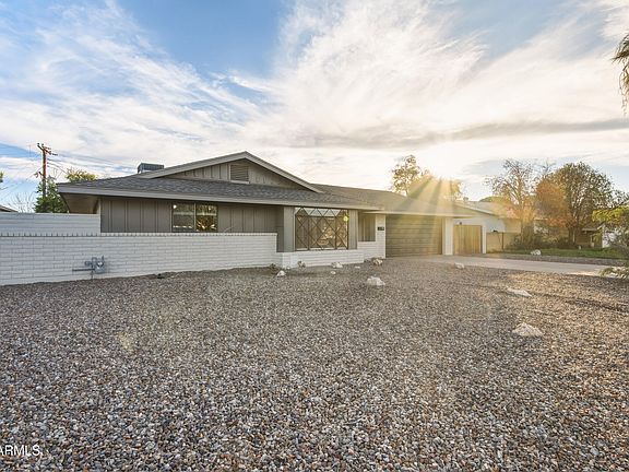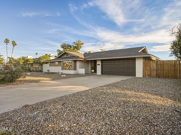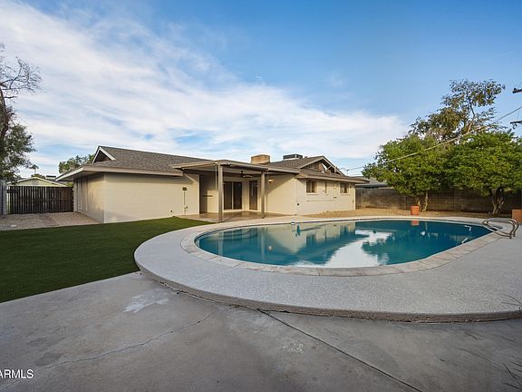 Beautifully updated 3-bed, 2-bath home in a quiet North Central Mesa neighborhood with no HOA. The bright, open layout features fresh paint, updated lighting, tile floors, and vinyl plank in bedrooms. The kitchen offers updated backsplash, granite countertops, dual stainless sink, breakfast bar, ample cabinet space, and updated blinds. Both bathrooms have tasteful tile and pebble-mosaic accents. The backyard features a newly plastered pool, resurfaced deck, mature shade trees, synthetic grass, low-maintenance landscaping, covered patio, and block wall. Additional updates include recent exterior paint, major plumbing and electrical work, and a two-car garage with workshop and separate laundry room. Conveniently located near schools, parks, dining, entertainment, and major freeways.
