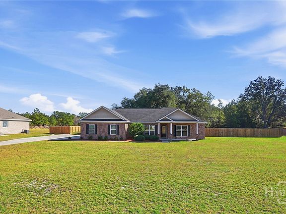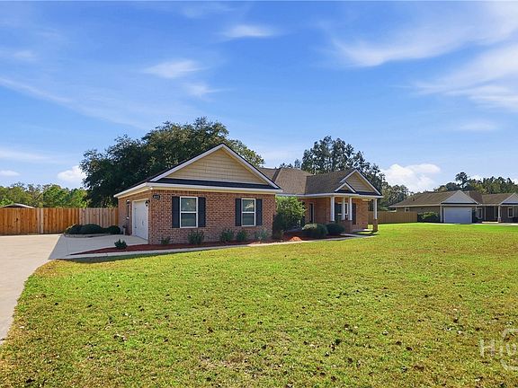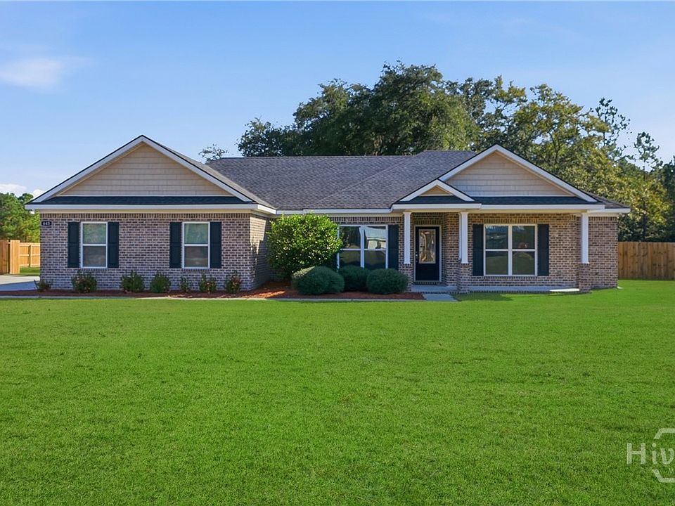Welcome Home! This stunning brick ranch located in sought-after Effingham County is perfectly situated on a spacious .82-acre lot with NO HOA! Step inside to a warm and inviting living area accented by vaulted ceilings, shiplap detailing, and a charming brick fireplace. The kitchen is upgraded with granite countertops, paired with stainless steel appliances, and a convenient walk-in pantry. The primary suite offers a true retreat with an elegant tray ceiling, a relaxing garden tub, a separate tiled shower, and a roomy walk-in closet. With 3 bedrooms and 2.5 baths, this home combines comfort, style, and the ease of one-level living. Definitely a must see!