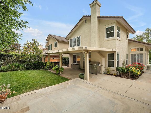 This tastefully upgraded home is truly a rare offering. It enjoys one of the most peaceful settings in all of Wood Ranch. Located on a quiet cul-de-sac, across from naturally wooded open space, it's like being surround by luscious, park land. Inside you'll find improvements done with an eye for quality. The first floor boasts travertine flooring throughout the living spaces leading to the beautifully remodeled kitchen. Custom cabinetry, quartz countertops, a farmhouse sink and a spacious island with breakfast bar come together, creating the heart of the home. Upstairs, you'll find a gracious primary suite, complete with a sitting area featuring a toasty fireplace. There are also two nicely sized secondary bedrooms and guest bath. For the tech savvy and practically minded, this home offers an owned solar system complete with a Tesla Power Wall. Store your own energy and live comfortably during power outages. The HVAC system and ducting were replaced in 2020 and the front yard has been redesigned for drought tolerance, featuring artificial grass and redone planters. The rear yard is exceptionally private. Shielded by mature trees and overlooking the seldom-used, community park, it's the perfect place to relax or entertain friends on the covered patio.