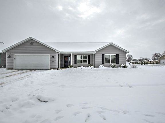 Discover modern comfort and convenience in this thoughtfully constructed 2021-built home located in the newer Parkside East subdivision within the Mt. Zion School District. A welcoming entry opens to the living room with cathedral ceilings, seamlessly connecting to the open-concept kitchen and dining area. The kitchen features white cabinetry, granite countertops, a large island, and stainless steel appliances. The spacious master suite offers a large walk-in closet and private bathroom. Along with the other two bedrooms and full bathroom. Enjoy the ease of all one-level living, along with a fenced backyard and concrete patio for outdoor relaxation. Additional highlights include a 2-car attached garage with an electric car charger, paid-off solar panels, and no HOA. Move-in ready and beautifully designed!