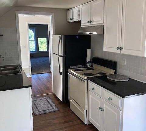 Newly renovated kitchen with granite countertops. All new windows installed May this year. Top floor apartment with great views. Hardwood floors, tiled bath. Offstreet parking in the back. Free Wifi. All utilities included except electric! Laundry facilities on site. Trash can are care by management. Owner pays for water, gas, wifi, trash removal, landscaping. On site parking for 1 vehicle. No smoking. Coin laundry facilities. Pet fee is monthly at $20/dog, $10/cat. Minimum of One (1) year lease.