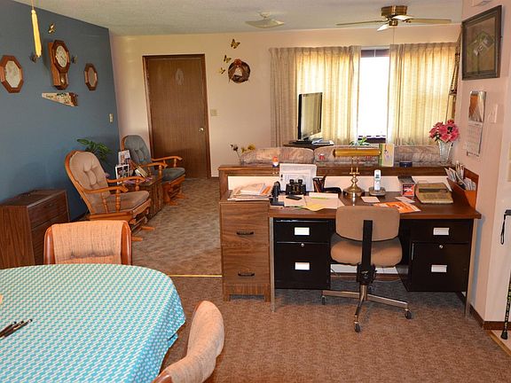 *** MAKE OFFER ***4 Acres of well-manicured buffalo grass and a mature windbreak. Modular with 3,360 total sq ft. Main floor: 1,680 sq ft. Living room, dining, & kitchen with refrigerator, dishwasher, electric stove, 2 bedrooms, 2 full baths. Basement: 1,680 sq ft finished. Large family room. A wall of cabinets, countertop and double sink provide a great serving area for a family and friends get together. 4 non-conforming bedrooms, 1 full bath, storage and utility room. Included in sale: pool table, black couch, tv and stand. Forced air heat and central air conditioning throughout. Buildings: 1-car detached garage. 40x80 Quonset, Shed, 3 Utility Buildings, 16x40, 20x40, and 28x40. Private well and cesspool. 2020 Property Tax $1,712.22