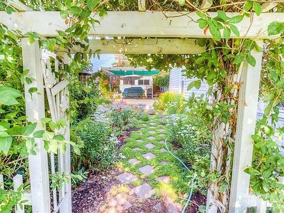 This sweet cottage home in the heart of Redmond combines yester-year charm with modern-day amenities. Gas fireplace with art-deco tile surround, crown moulding, arch doorway to bedroom with new carpet, tile floor in bathroom, glass front kitchen cabinets, Corian countertops, distressed wood breakfast bar, laminate floors in kitchen/dining area, built-in bookcases, lovely landscaping with water features, deck and garden shed. Detached combination 17x18 carport and 18x28 workshop. Alley access.