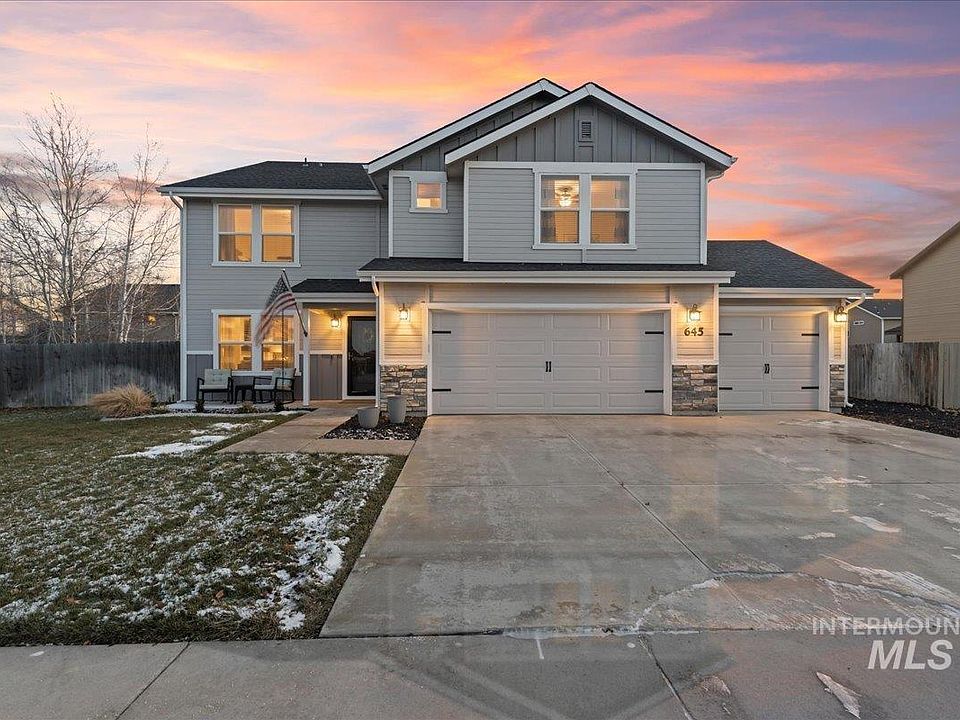 Did you make it out of the holiday season thinking maybe you need some more space? Well, look no further than this well-appointed home in the highly-sought Silverstone Subdivision in Mountain Home. As you step in, you are greeted with a cozy formal living room with an attractive built-in electric fireplace. The kitchen is a gourmet's dream with granite counters, soft-close cabinets, a butler's pantry, and upgraded stainless steel appliances. Enjoy an open layout that is perfect for entertaining! Upstairs you will find five spacious bedrooms, an impressive primary bedroom with attached master bathroom featuring a separate shower and soaking tup, a laundry room, built-in cabinets for extra storage, and a full bathroom. Equally impressive is the curb appeal of the front yard and the inviting covered back patio with extended concrete, perfect for summer entertaining. Add to this a 3-car garage and extra RV parking on the side and this home could be the popular listing on the block! Make your appointment today!