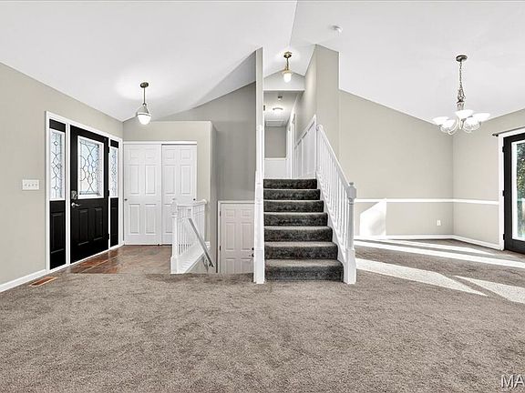 Looking for a well priced home backing to trees in the sought-after Villages of Stonegate Subdivision? Look no further! Fresh landscaping and great curb appeal welcome you home. Inside, a vaulted and spacious family room with gas fireplace opens to the bright, airy floor plan. The kitchen offers ample counter space, custom cabinetry, a breakfast bar, and opens to the dining area with French doors leading to a freshly painted deck overlooking the tree-lined backyard. Upstairs, the primary suite features a walk-in closet, dual sinks and a separate tub and shower. Two additional bedrooms and an updated full hall bath complete this level. The finished walk-out lower level includes a large family room, bonus room, half bath, and plenty of storage. Enjoy outdoor living on the level, private yard with a freshly stained deck and spacious patio—perfect for entertaining. The oversized 31x22 finished three-car garage provides tons of room for vehicles and storage. All of this in a prime and ever growing Wentzville location with great highway access and close to amenities in every direction. This one is priced to sell—don’t miss your chance!