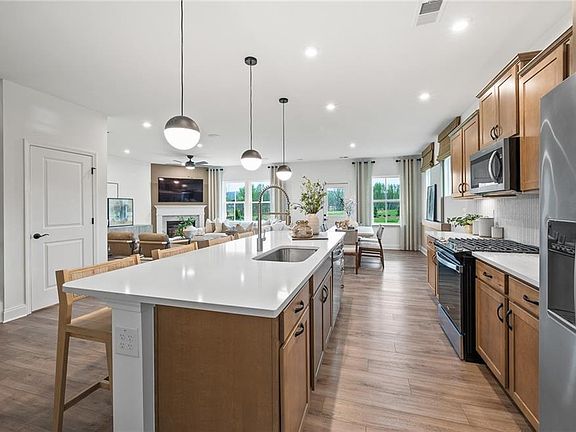Pulte Homes Presents The Mitchell at Anderson Point! This stunning new construction near Lake Dow offers open-concept living with a chef-inspired kitchen, oversized island, custom cabinetry, and premium finishes. Features include a cozy fireplace, formal dining room, main-level guest suite with full bath, spacious owner’s suite with walk-in closet, versatile loft, and two-car garage. Located minutes from McDonough Square, with easy access to Georgia National Golf Club, Tanger Outlets, Jackson Lake, and more. Photos are representative stock images of a similar floor plan.