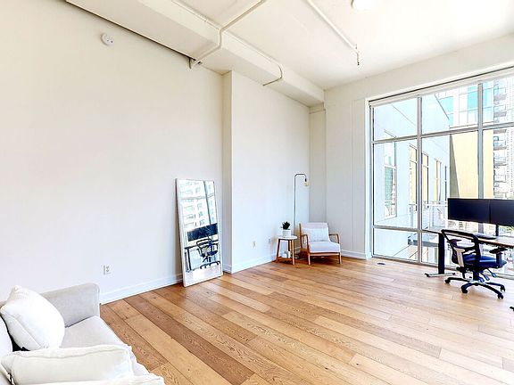 Experience the epitome of urban living in this top-floor corner unit at the Market Lofts (featured on HGTV's House Hunters) in the wonderful South Park neighborhood, featuring exceptional views of Downtown Los Angeles. The unit is awash with natural light from large windows accentuated by soaring 12-foot ceilings, and further complemented by two balconies. Beautiful hardwood floors flow throughout the space, which includes an adaptable sizable flex space (previously used as a second bedroom). The unit features new stainless steel appliances, in-unit washer and dryer, a Nest thermostat, and window shades for added privacy. The spacious layout incorporates an open closet for optimal storage. One reserved covered parking spot adds to the conveniences offered. The Market Lofts complex offers extensive common-area amenities designed to enhance your lifestyle. Enjoy a pool, jacuzzi, and gym for your fitness needs, as well as a movie theater room and clubhouse for entertainment. A BBQ area for outdoor gatherings, Amazon lockers for secure package delivery, and a 24-hour front desk security monitoring the premises. This unit places you right near Grand-Hope Park and a block from a Metro Station. You'll also enjoy close proximity to grocery stores, fine dining, shopping, and entertainment venues including Whole Foods, Ralph's, Philz, Target, The Bloc, LA Live, The Broad Museum, Walt Disney Concert Hall, and Grand Central Market. Experience the vibrant life of Los Angeles right at your doorstep. With so much to offer, this loft is the epitome of city life at its best.