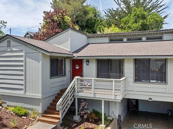 This home is located in the desirable Park Hill neighborhood and offers an open floor plan with vaulted ceilings that create a spacious and airy atmosphere. The living room features a cozy wood-burning fireplace, perfect for relaxing evenings. There are two bedrooms, with the main bedroom including a full bathroom, while a half bathroom is conveniently located off the hallway. A sliding door leads directly to a wooden deck in the backyard, which is fully fenced and presents a blank canvas ready for your personal touch. Set in a prime location, the property offers views of the charming village of Cambria and is brimming with potential, just waiting for you to bring it up to date.