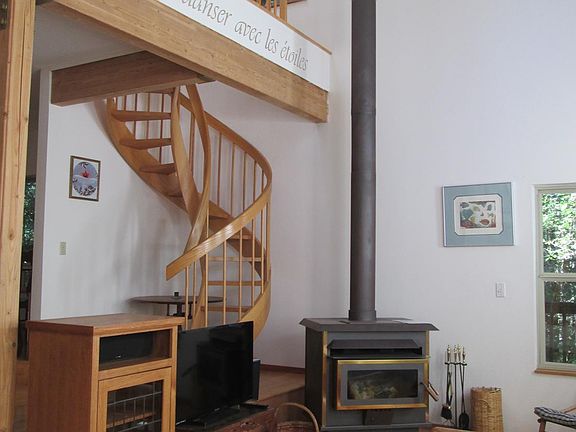 Nicely situated on a quiet road off the Grandview Loop, located a short 6 minute drive to Oregon State University. Nestled in a very private location, yet close to town. Hardwood maple and cherry flooring. Beautiful kitchen and pantry with all amenities, granite countertops. Formal dining room.Separate laundry room. Lifekind organic natural rubber latex Queen mattress in master bedroom. Wrap around covered porches on 3 sides. Eight skylights bring in natural light. Relax in the evenings in front of a large fireplace or sit outside on Adirondack deck chairs to watch the sunset. Dine in sumptous solarium surrounded by plants.