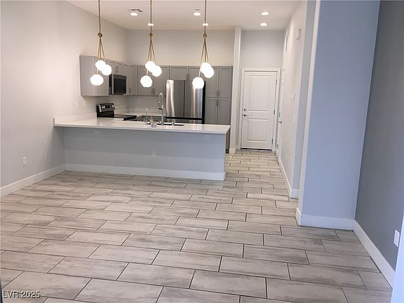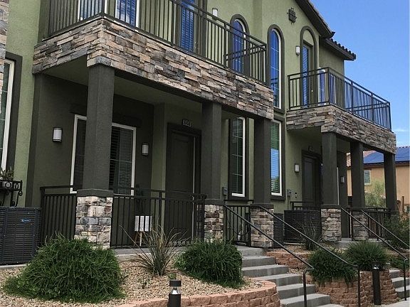 Providence Master Plan! Modern Townhome purchased in 2022, in like new Move-In Condition! Discover this beautiful 3-bedroom, 2.5-bath unit with 10 ft ceilings throughout! Enjoy your culinary arts in a stylish open-concept kitchen equipped with stainless steel appliances & Quartz countertops! The living /dining area, laundry room & convenient half bath make this home perfect for entertaining. Upstairs, you'll find a generous master suite, along with two additional bedrooms & a hall bath that provide ample space for family and guests. The property has a covered front porch, a walk out balcony off the master bedroom along with a finished 2 car garage. Private Gated Community with Swimming Pool & Spa - Beautifull pet park! Just 25-30 minutes from the world-famous Las Vegas Strip, Airport, & UNLV, this home is in close proximity to the 215 freeway, schools, shopping & more. A rare find, you will not be disappointed!