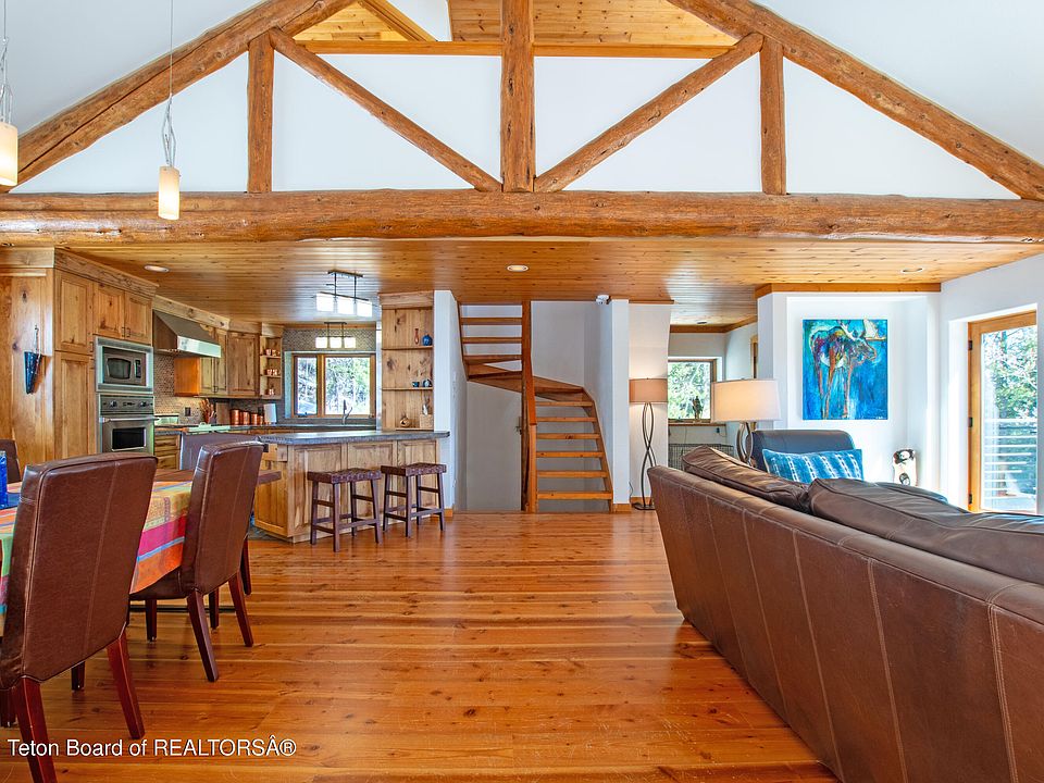 Experience end of the road privacy from this light and bright cabin in the woods with direct access to Wyoming State lands and National forest beyond. Located just minutes from downtown Wilson, Wyoming, and Jackson Hole Mountain Resort, this open concept home has expansive view across the valley. Surrounded by towering pines and whispering trees, this retreat offers the perfect blend of seclusion, comfort and access. Large picture windows invite nature in from every angle. A chef's kitchen features a full compliment of stainless steel Viking appliances. Step outside to enjoy your private deck, perfect for morning coffee or evening stargazing. With hiking trails just steps away and wildlife all around, this is a true outdoor enthusiast's paradise