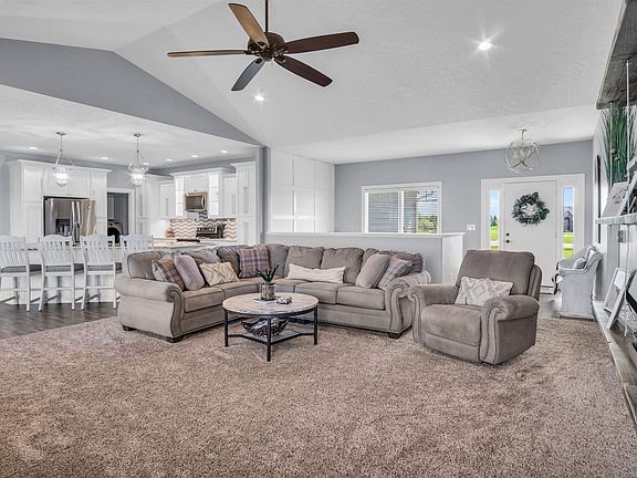 Stunning! This 5 bedroom home on 3 acres will catch your eye. Over 4000 total sq ft. with so much natural light and quality built. Where to start with all the amenities of this home; all electric, underground sprinklers, oversized 3 car garage, partially fenced backyard, pellet stove, gorgeous fireplace, Cambria Quartz countertops, plus 3 bedrooms on the main floor. The Master suite has dual vanities, LARGE walk-in shower and walk in closet. The two additional main floor bedrooms on the other side of the home are spacious with large closets. The fully finished basement has plenty of space for entertaining, lots of storage, storm room, bathroom, 2 large bedrooms both with walk-in closets.
