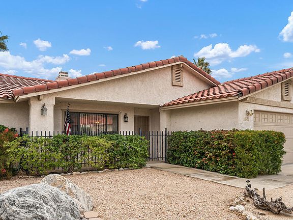 Experience the Pinnacle of Country Club living at Mission Lakes Country Club. This 1,571 square foot, 3 bedroom, 2 Bath single level home features an open concept living area that seamlessly transcends into the dining, and beautifully designed kitchen. One of the key features of this home is the split bedroom concept with the primary bedroom suite located on the east side of the home, with 2 additional bedrooms located on the west side of the home. The great room features a beautiful natural gas fireplace, and laminate wood flooring that flows throughout the kitchen, dining, and primary bedroom suite. The primary bathroom, guest bathroom, and 2 bedrooms feature large format tile floors. The kitchen and bathroom vanity countertops were upgraded with high quality granite. This home was also recently upgraded with leased solar for reduced energy costs. The backyard has a large covered patio, and captivating views of the Mt. San Jacinto Mountains. Within the private backyard is an above ground hot tub for quiet evenings under the stars, or to relax in after playing a round of golf on the Ted Robinson Designed Championship 18 Hole Golf Course. An UNLIMITED GOLF MEMBERSHIP, for two on title is included in the low monthly association dues. Visit missionlakescountryclub.com to learn more about the club, the world class amenities, events, and the many benefits of being a member of Mission Lakes Country Club.