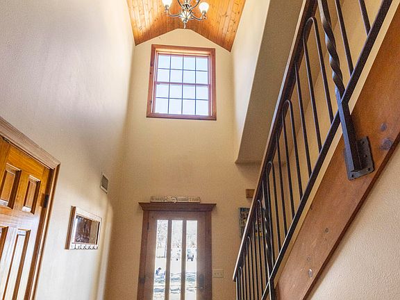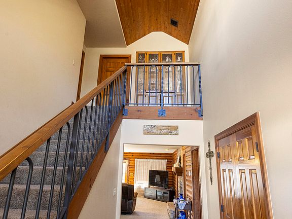 Country living at its finest! This two-story log cabin sits on 5 beautiful acres and offers many upgrades completed over the past few years. The full basement provides a second living area, perfect for entertaining or additional living space. Inside, enjoy an open-concept layout featuring alder wood cabinets, granite countertops, stainless steel appliances, gorgeous wood ceilings, and custom features throughout the home. Many upgrades include: replacement of all three HVAC units, new refrigerator and dishwasher, new porch railing, completed sidewalks and exterior stairs to the basement, a new concrete slab outside the shop, updated shop siding, and replaced/taped-and-finished sheetrock in the shop. The basement has been extensively improved with custom-made cabinets in the basement kitchen, new tile flooring, an additional bedroom with closet, a newly added bathroom with double sinks, and a remodeled shower. Additional upgrades include solar panels, added attic insulation, and updated siding on both the house and garage.