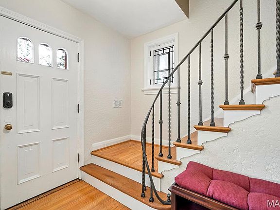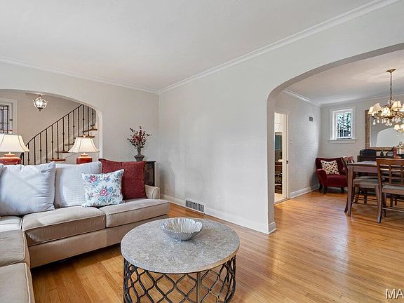 Welcome to this stunning 2-story brick home in the St. Louis Hills neighborhood, where neighbors greet each other along the tree-lined streets. The freshly painted living room welcomes you with abundant natural light, gleaming hardwood floors, and a decorative fireplace. The dining room is perfect for everyday meals or hosting guests and opens seamlessly to the updated eat-in kitchen, which features stainless steel appliances, granite countertops, a gas stove, stained glass accents, and a walk-in pantry. A cozy sunroom and charming half bath complete the first floor. Upstairs, the spacious primary bedroom offers a walk-in closet, a sun porch with newer carpeting, and private access to a spa-like bath with a large soaking tub. Two additional bedrooms provide ample closet space and hardwood floors. The finished lower level is ideal for entertaining, with a captivating Dutch door, newer carpeting, knotty pine paneling, built-ins, and a gas fireplace — perfect for movie nights or gatherings. The renovated laundry room boasts custom cabinetry, a folding area, and a sink, with plenty of additional storage throughout the lower level. Outside, the level, fenced yard is beautifully landscaped and features a great patio and a 2-car brick garage. Closets have been professionally organized, and multiple built-ins add charm and convenience throughout the home. The roof was installed in 2022, and there are two hot water heaters. During the holidays, the street becomes Reindeer Road, and transforms into a festive wonderland, making this home especially magical. Enjoy living in this idyllic St. Louis Hills location within walking distance to parks, restaurants, schools, and more!