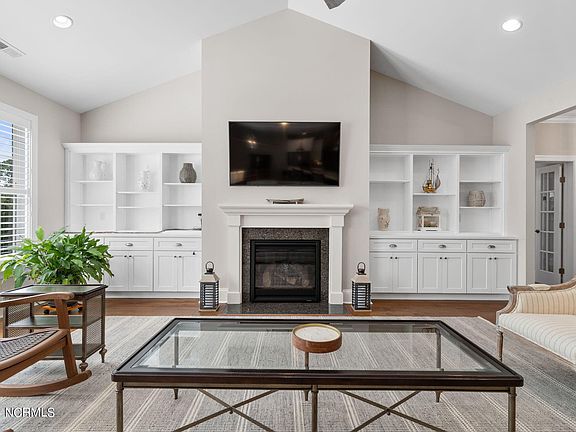 Experience unmatched coastal luxury in this stunning 2019 custom-built home, featuring 4 bedrooms and 3.5 bathrooms. Upon entry, enjoy hickory wood floors that flow throughout the first level, complemented by a cozy gas fireplace, built-in custom cabinets, and plantation shutters throughout the entire home. The gourmet kitchen boasts quartz countertops, a gas cooktop, and custom tiled backsplash, seamlessly connecting to the living and dining areas with the open floorplan. The thoughtful split floor plan includes a luxurious main suite with two spacious walk-in closets and direct access to the enclosed back porch. Each bathroom is elegantly designed with quartz countertops and custom tiles, with the main bath featuring an oversized walk-in shower. Outdoor living thrives on the deep front porch and the Eze-Breeze enclosed back porch, perfect for savoring sunsets. Situated in Ocean Ridge, a prestigious gated golf community, residents can enjoy numerous activities and the new additional amenity center planned for 2025, including indoor/outdoor pools, fitness gym, tennis and pickle-ball courts, and access to a private community beach house at Sunset Beach. With over 100 organized groups and four premier golf courses, your ultimate coastal lifestyle awaits. Don't miss this opportunity to call this your personal residence or second resort style home in Ocean Isle Beach, NC —schedule your tour today!
