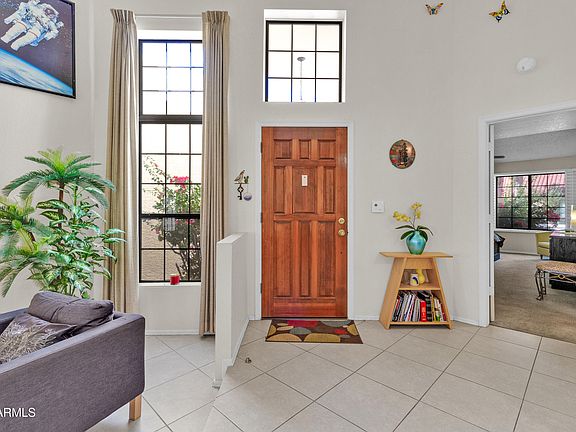 Welcome Home! This beautifully maintained 3 bedroom/2 bath patio home is ready for you to move in. Highlights include: Vaulted ceilings and quartz counter tops, Energy Star rated heating and cooling systems and solar electric panels. *Very low yard maintenance. *Private gated walk-way to Trader Joe's, Wildflower and dining. *Close to walking/biking paths and parks. *Ideal Location: Easy access to US 60, I-10, Loop 101 and Loop 202 freeways.