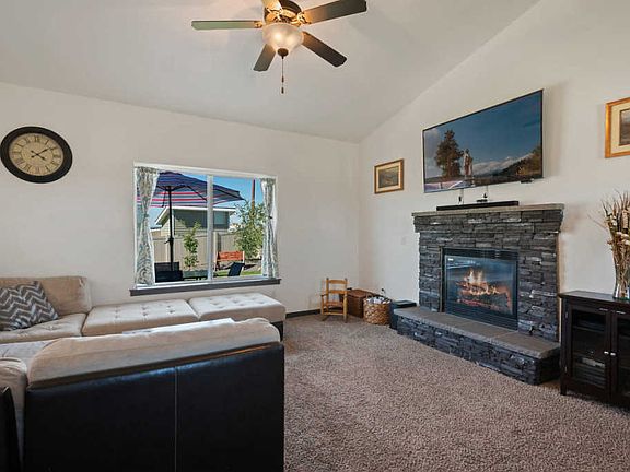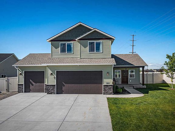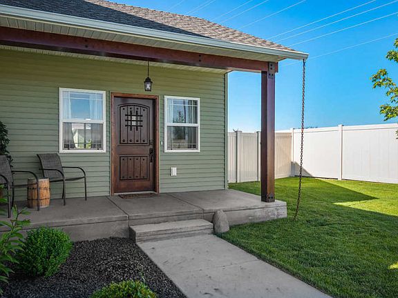 Pride of ownership on LARGE well manicured lot in quiet Rathdrum. This bright, clean home welcomes you with it's covered front porch and lush lawn. Open floor plan. Living room features vaulted ceiling and cozy stone fireplace and hearth. Kitchen has eat at island, gorgeous granite counter tops and window above the sink looking out to the backyard. Bonus little office nook area! Upstairs is your large master suite, 2 additional bedrooms, bathroom and laundry room. Backyard is BIG with open patio, landscaping, storage shed and planter boxes. Great neighborhood! Easy commute to downtown CDA or Spokane.