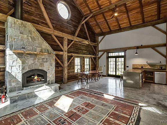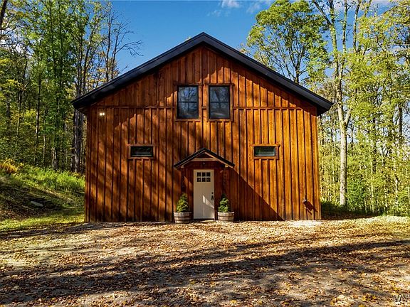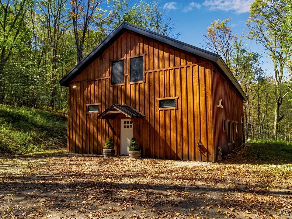 Welcome to 6453 Watson Road; a luxury, timber frame home built in 2018 with board & batten exterior nestled on 5.18 acres in the prestigious Watson Hill private community with only 10 parcels, minutes from the ski slopes of Ellicottville. Step through the front entryway into the spectacular two-story great room complete with expansive windows for an abundance of natural light, soaring 18’+ ceilings & a flawless fieldstone wood-burning fireplace opening to the gorgeous, high-end kitchen; hardwood cabinetry, polished concrete countertops, stone backsplash with attractive breakfast bar. Stunning floors with radiant heating throughout accented by extravagant architectural character and incredible attention to detail. Featuring two spacious first floor bedroom suites; each with lavish tile shower surrounds and impeccable finishes. The open rise staircase with wrought iron spindles lead to the generous loft upstairs providing ample room for additional bedrooms or entertaining and step out back for sipping wine while staring at the stars during those cool autumn evenings. The newly sided, 3 car detached garage built in 2021 with heat/cooling is ideal for storage and enjoy ease of living on this exquisite property with features including 1st floor laundry, black metal roof, Lochinvar water heater & radiant floor heating system, 200 amp electrical w/circular driveway. Beautifully appointed & meticulously manicured home set more than 235’+ back from the street with breathtaking views of the peaceful & serene landscape. Showings begin Wednesday, 10/8/2025.